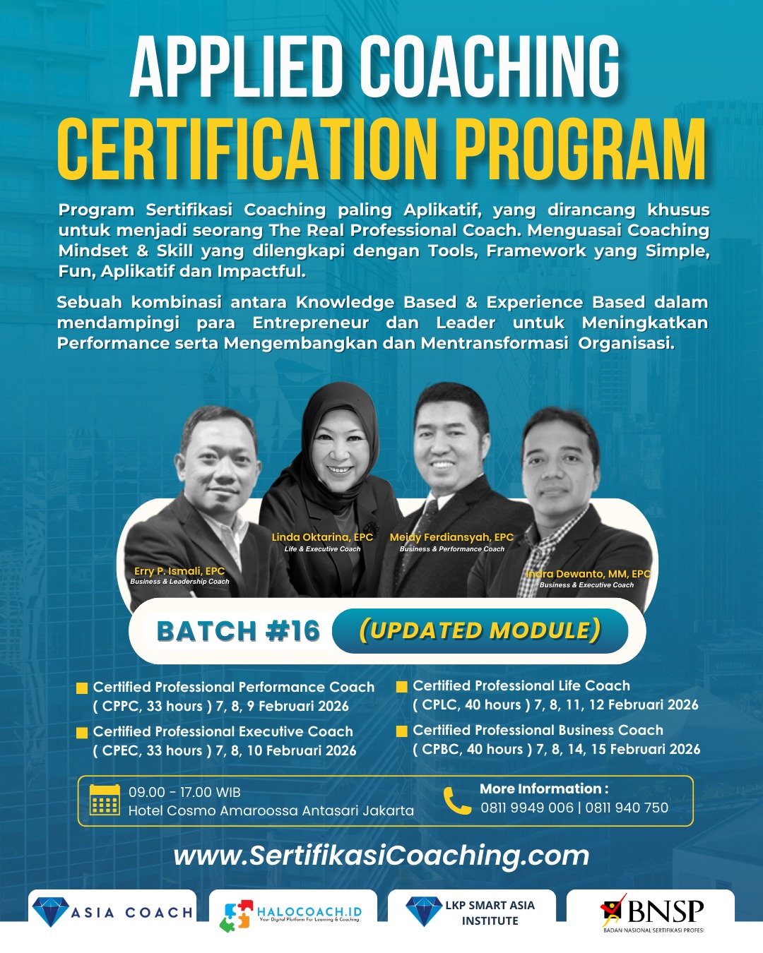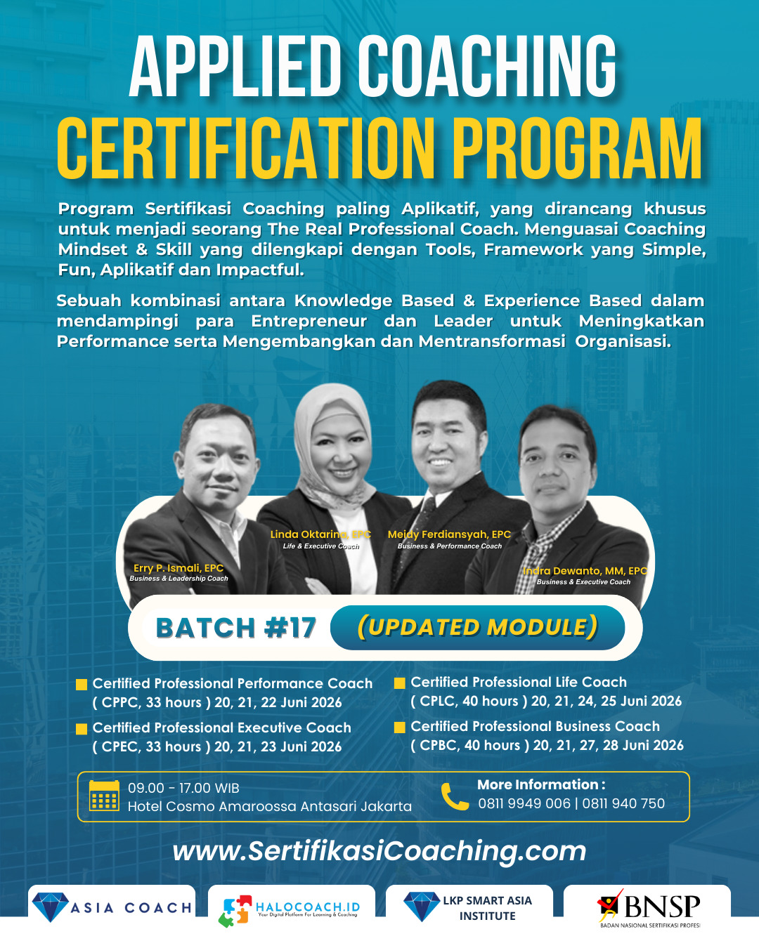 Ikuti sekarang juga Program Sertifikasi Coaching terapan (APPLIED COACHING Certification Program) Terbaik & Terlengkap di Indonesia dari Asia Coach.
